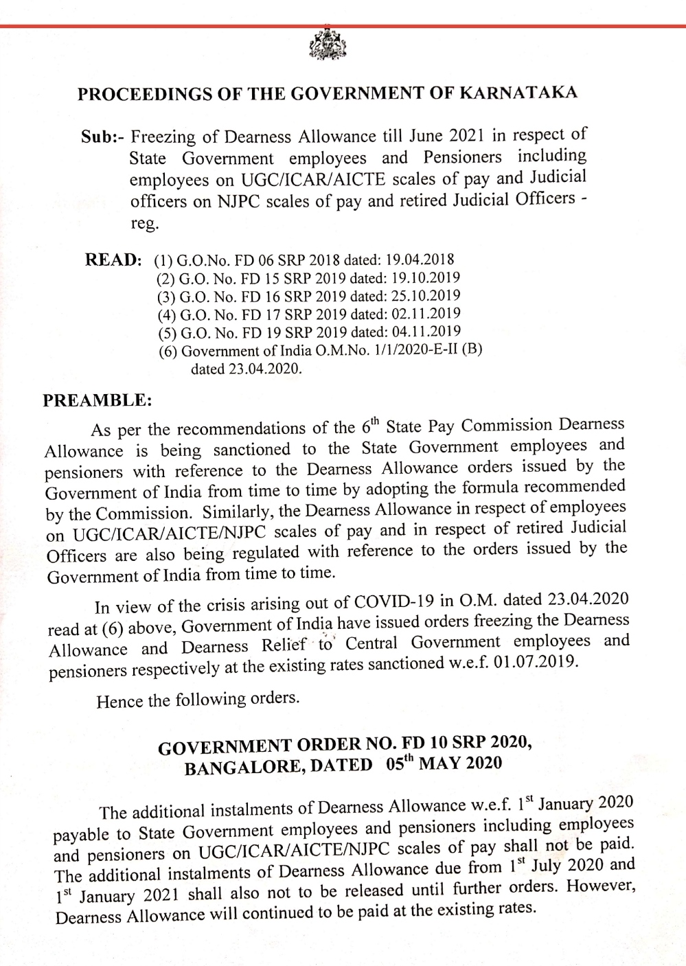 Title:Held of the dearness allowance of b state government employees and pensioners and other govt servants